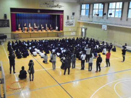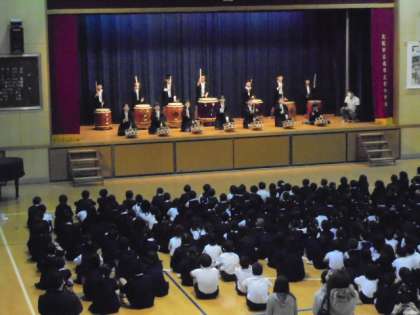 今朝の児童集会では、和太鼓クラブの発表です。感動しました。