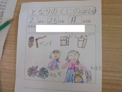 国際理解教育のひとつ、「となりの国の学習」をしました。講師は、林京美先生です。