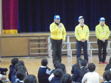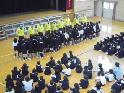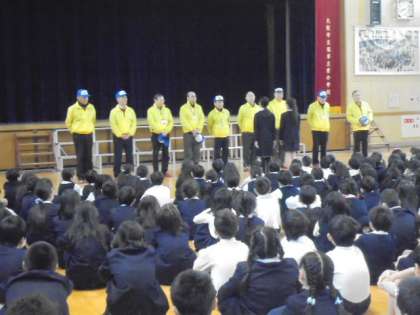 今朝の全校朝会では、子どもたちの安全を見守ってくださっている地域の方々をお招きして、1年間のお礼の気持ちを伝えました。暑い日も、寒い日も、雨の時も、子どもたちの安全のために、ありがとうございます。