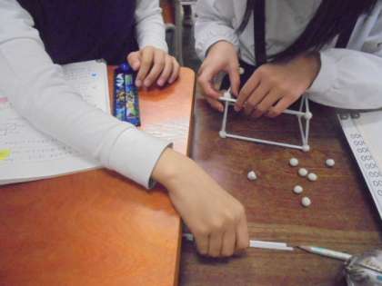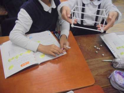 (中・下)算数の学習で、ひごと粘土で箱を作っています。