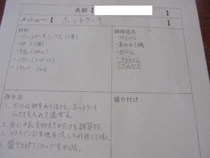 (上)ホットケーキを作ります。卒業まで楽しみがたくさんあります。