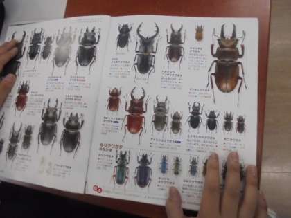 (中)昆虫の本を読んでいます。
