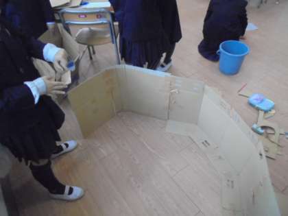 (下)お楽しみ会の準備です。「なにをするの?」「シンデレラ!」
