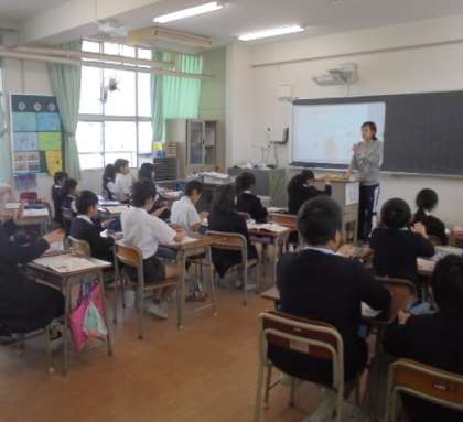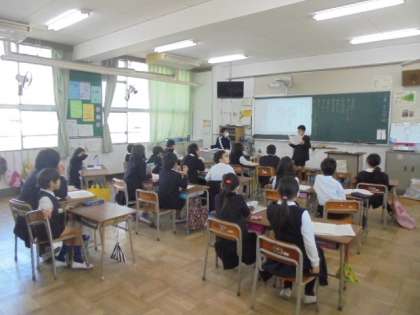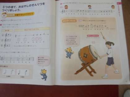 (中・下)音楽で、太鼓のリズムを学習しています。