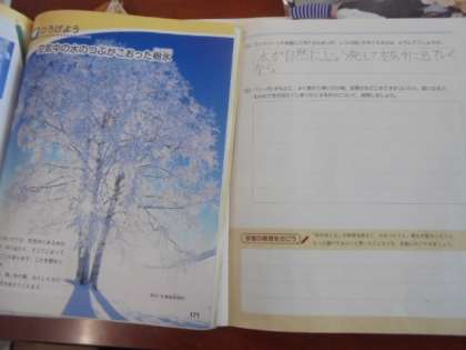 (上)理科「空気中の水のつぶがこおった樹氷」