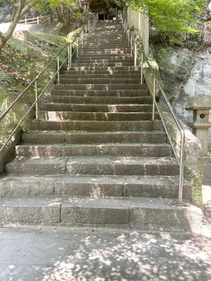 投稿者は、休暇2日目を山で過ごしました。果てしなく続く階段を登った先に、緑の山々の絶景が広がり、感動しました。心新たに、がんばります。