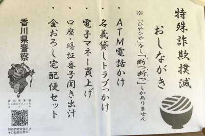 さすが香川県警。特殊詐欺防止をさぬきうどんにつなげています。