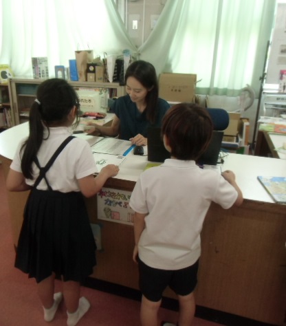 学校図書館司書の佐々木先生です。毎週木曜日に来てくださっています。