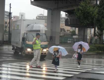 朝早くから、主な交差点などで地域の見守り隊の皆さま、保護者の皆さまが子どもたちの通学路に立ってくださっています。本当にありがとうございます。