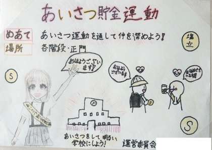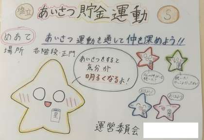 今日から2週間、児童会運営委員の子どもたちが「あいさつ貯金運動」を始めています。正門で子どもたちが元気よくあいさつをしながらコインを配り、貯金箱にコインを入れていきます。貯金を通して、あいさつの習慣が身につくといいですね。