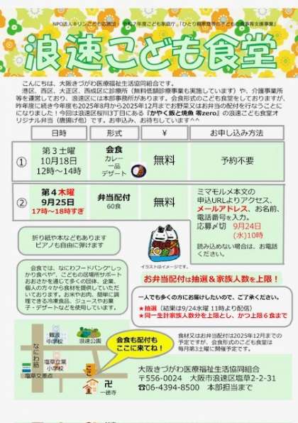 9月25日(木)に、お弁当を配るこども食堂を行います。