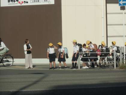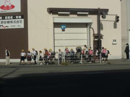 学校前の歩道橋をなにわ筋に渡ったあたり。毎朝子どもたちを安全に見守ってくださり、ありがとうございます。