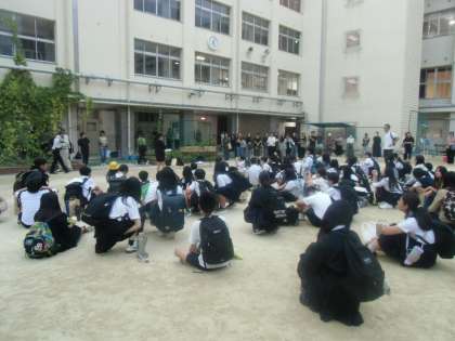 予定より早く、小学校に着きました。2日間、事故やけが、病気もなく、楽しく過ごせました。皆さん、ありがとうございました。