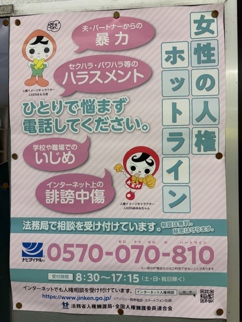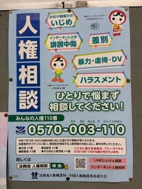 通勤で利用するJRの構内に貼っていました。人権にかかわる大切なポスターなどがあり、読むたびに身が引き締まります。