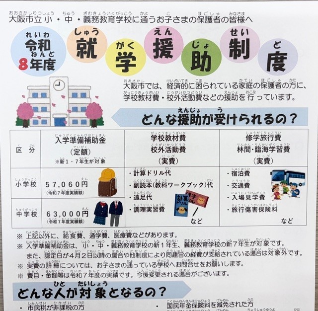 令和8年度の「就学援助制度」の申請プリントを配りました。