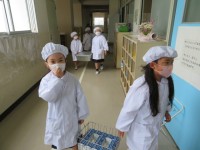 3時間目と4時間目の業間休みに1年生の教室に給食運搬のお手伝いをしています。自分...