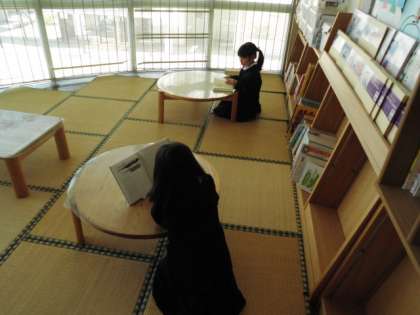 2階の読書スペースで、本を読んでいる子どもがいました。