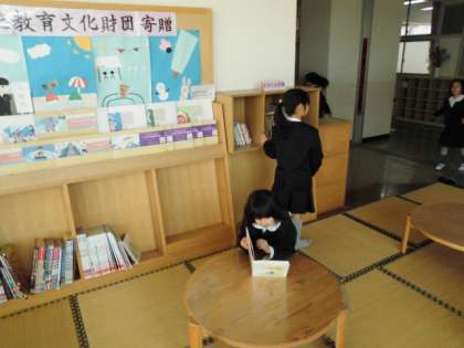 今朝まで降った雨で運動場に出ることはできませんが、子どもたちは休み時間をそれぞれに活用しています。