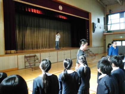 校長からは、「挨拶の声を学校にみんなで響かせましょう」という内容の話をしました。