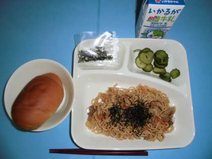 1/2黒糖パン 牛乳 焼きそば きゅうりのしょうがづけ