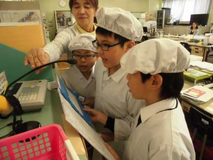 委員会活動が始まって、給食の時間には給食委員会の担当児童が、給食放送をしています。