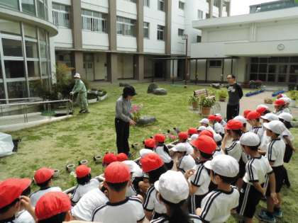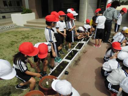昨年の2年生が取り組んだ「人権の花運動」のチューリップが盛りを過ぎたので、ペチュニアとスノーポールへの植え替えを行いました。人権の花運動のプランターや鉢に2年生が植え替えました。これから毎日水やりをしっかりとしながら、花の命を大切に育ててほしいものです。