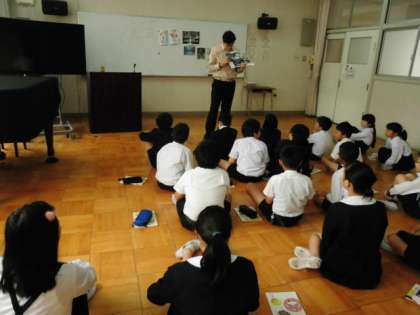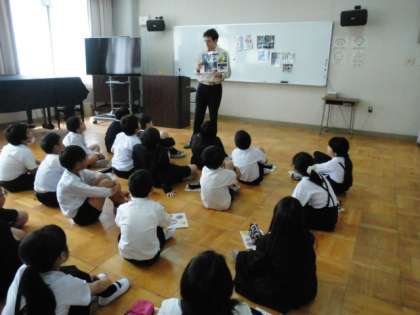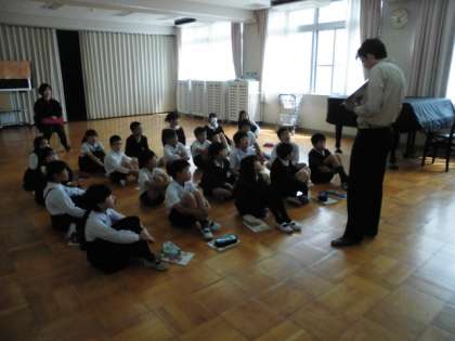 カナダ出身のマイク先生が、自己紹介をしながら英語の活動を進めていました。