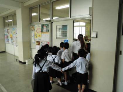 昨日は2年生にリードされて学校探検を行った1年生ですが、今日は1年生だけで学校探検をしていました。