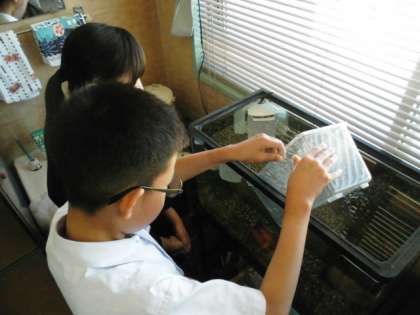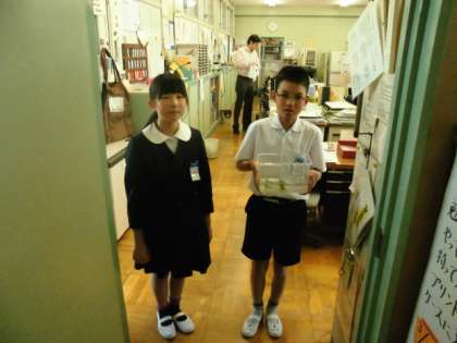 5年生が昨年度から飼育を続けて引き継いだめだかを校長室に持ってきてくれました。今年度、飼育観察するめだかが新たに届いたからです。