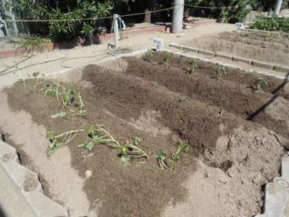 うねを作って、丁寧に植えています。これからの水やりや雑草抜きなどの栽培活動や観察活動を通して子どもたちは、いろいろなことを学びとってくれることでしょう。