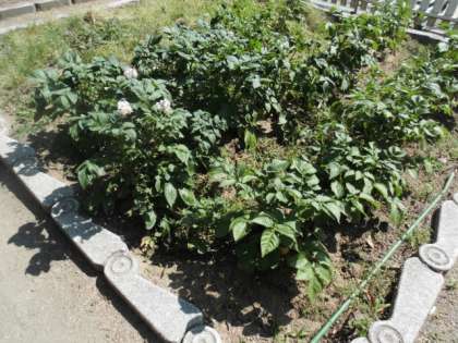 学年ごとにサツマイモ、ジャガイモなど、いろいろな苗を植えています。