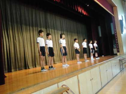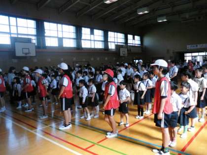 子どもたちは、各学級ごとに講堂に集まってきます。
