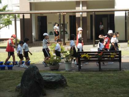 集会が終わって、講堂を出て教室へ帰るときもいろいろな学年がまじっていました。