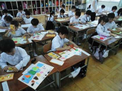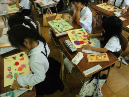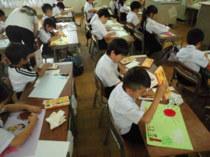 パスを使って、思いをこめて力強く作品を仕上げようとしていました。