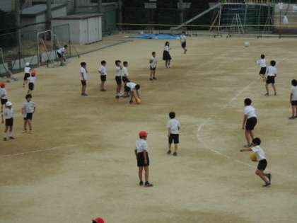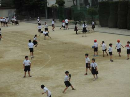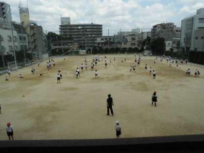 職員室から運動場を眺めると、多くの子どもたちが運動場いっぱいに広がって遊んでいました。