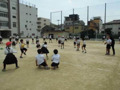 学級で「みんな遊び」ということで、運動場に出てきている学級もあります。