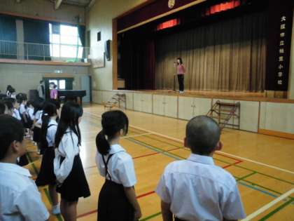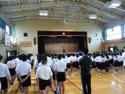 子どもたちは、8時30分までには各学級ごとに講堂に集合しています。