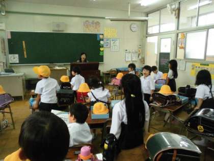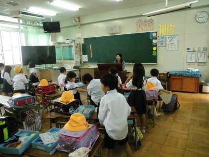 5時間目までを頑張った子どもたちは、それまでの疲れを吹き飛ばすような大きな声で柏里小学校校歌を歌っていました。(これまでも、終わりの会で歌い続けています)