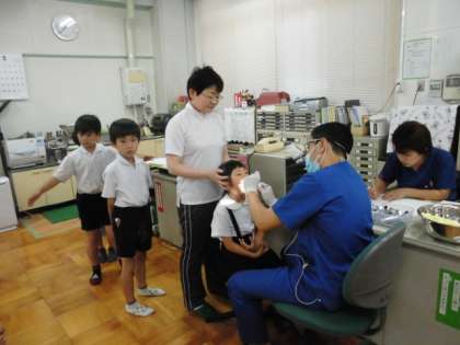 子どもたちは、大きく口を開けてしっかりと検診を受けていました。