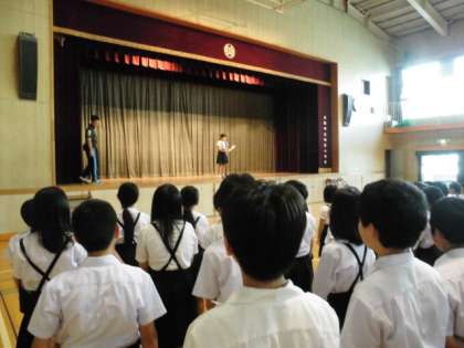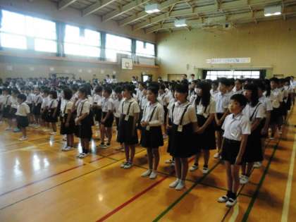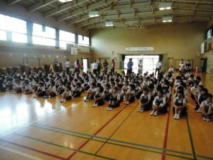 校長の話の後、児童会からのお知らせや担当の先生からの今月の生活目標にかかわる話などがありました。