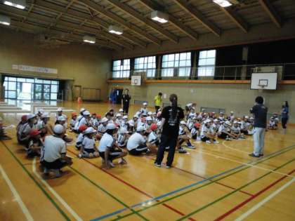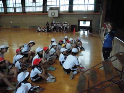 雨で運動場が使えないので、講堂で実施予定の種目だけ行います。