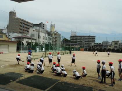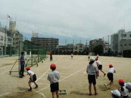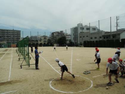 2時間目は、5年生児童の協力も得て、ソフトボール投げの測定をしていました。
