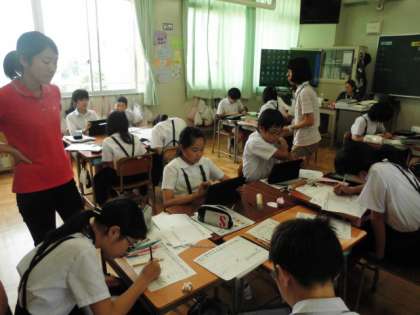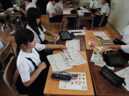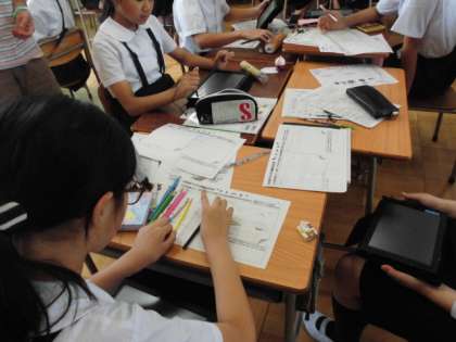調理実習「朝食の献立を考えよう」の計画について班ごとに話し合っていました。