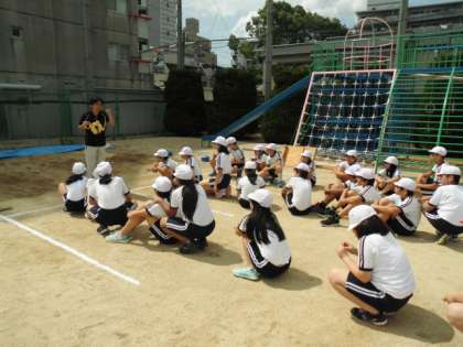 まだ初めの段階なので、走り幅跳びのこつや学び方、場の設定や測定の仕方や約束など、いろいろと確認することが多いです。でも、6年生の子どもたちは、飲み込みが速くていろいろなことをきちんとつかんだようです。
