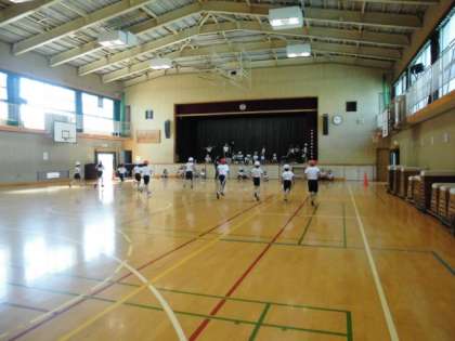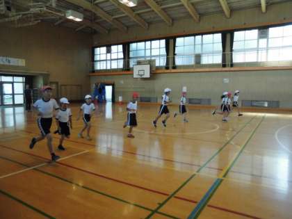 4年生が講堂で、「20mシャトルラン」にチャレンジしていました。