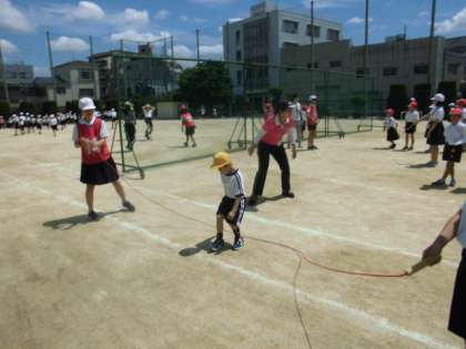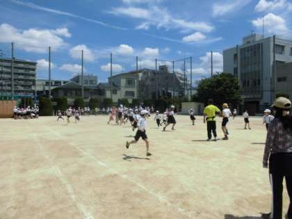 それぞれのゾーンに何班がチャレンジするかは、決まっています。班のリーダーのもとに集まって準備運動をしてスタートします。