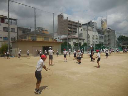 今週は、運動週間ということで、2時間目終了後の休み時間とお昼の休み時間に各運動を各縦割り班ごとにローテーションをしてチャレンジしています。