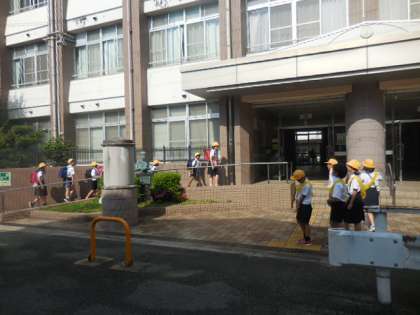 今朝は蒸し暑さのせいか、登校してくる児童の元気がいつもより心なしか無いように感じました。