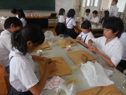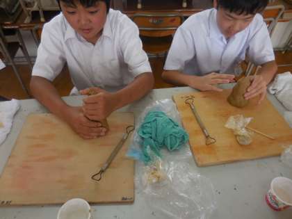 埴輪の構造や特徴を踏まえて、各自のオリジナル埴輪を作っています。