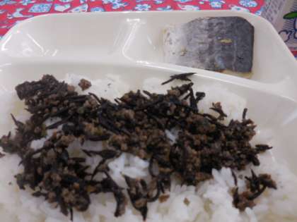牛ひじきそぼろは、ごはんにかけていただきます。しその香りが効いていて、さっぱりとおいしくいただきました。